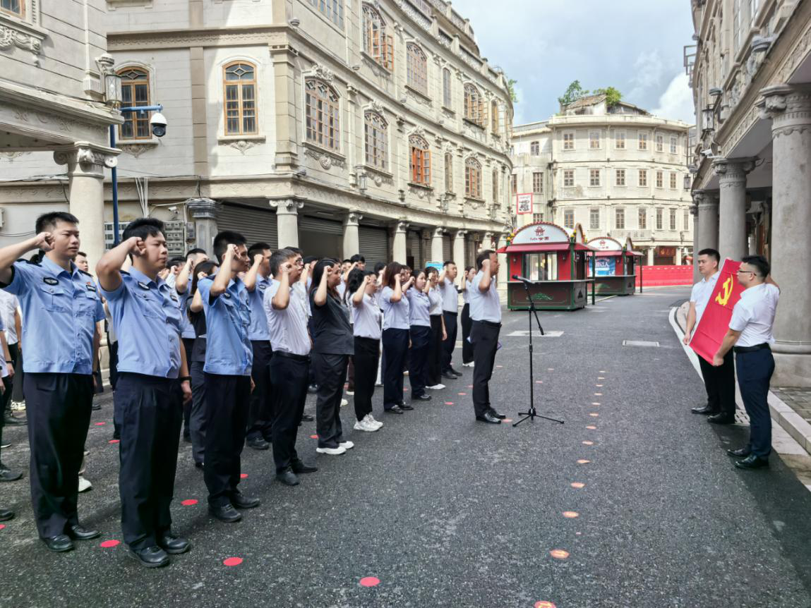 为庆祝中国共产党成立103周年,激励广大新发展党员担当作为、奋发向上,大力营造创先争优浓厚氛围,7月1日,市直机关工委在“党建引领促发展 蓄势奋发启新程”汕头市机关党建成果展现场——小公园开埠区党群服务中心举行2024年市直新发展党员入党宣誓仪式。市直机关工委二级调研员王长城为新党员领誓,来自市直各条战线的80名新党员参加了宣誓活动。