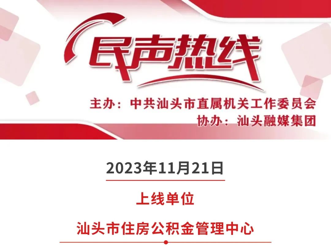 【我为群众办实事】关注“民声发布”邀您交流互动!《民声热线》11月21日上线单位:汕头市住房公积金管理中心