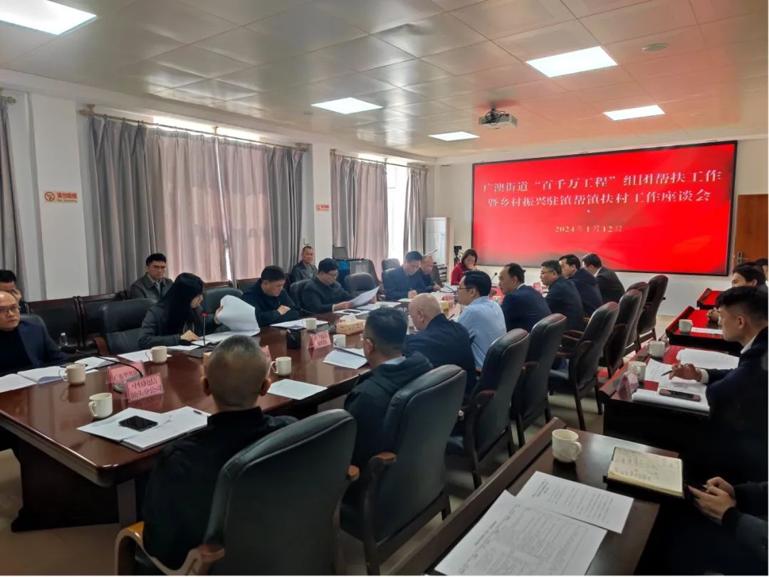 市委办公室牵头各帮扶单位在广澳街道召开“百千万工程”组团帮扶工作暨乡村振兴驻镇帮镇扶村工作座谈会,共同观看广澳街道创建“百千万工程”典型街道视频片,总结2023年帮扶工作,研究下一步工作计划,并围绕广澳街道推进“百千万工程”、加快“智慧低碳·侨风人文”示范带项目建设、东湖社区培育省级典型村、推动社区“一心一环两轴”规划项目建设、打造“侨房管家”创新案例等重点工作交流探讨、出谋划策。