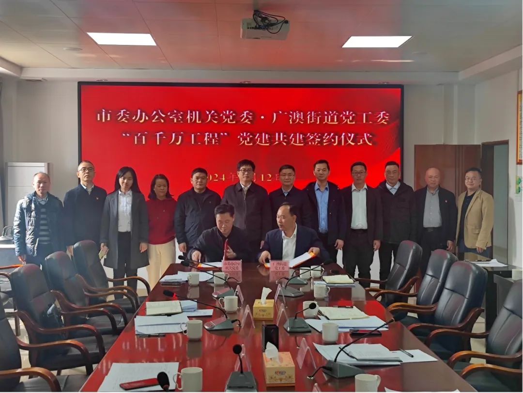 随后,市委办公室机关党委和广澳街道党工委签订“百县千镇万村高质量发展工程”党组织结对共建备忘录,双方将通过强化党建引领作用,持续深化党组织结对共建,进一步加强沟通联动、联村共建、“双报到双服务”、宣传引导等工作,助推“百千万工程”组团帮扶和“党群连心、服务为民”工作落实到位,以实际行动贯彻落实市委十二届七次全会精神,为广澳街道推进“百千万工程”和助力汕头高质量发展贡献党办的智慧和力量。