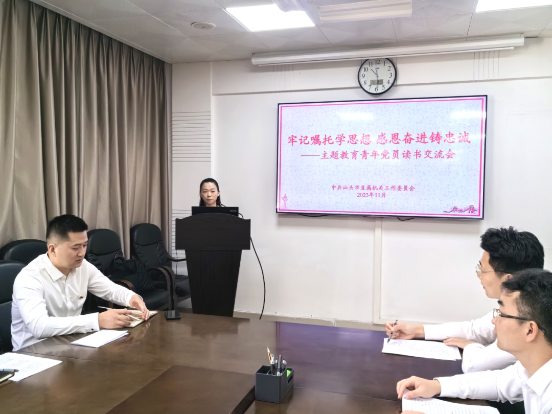 为深入开展学习贯彻习近平新时代中国特色社会主义思想主题教育,11月8日上午,市直机关工委举办青年党员“牢记嘱托学思想,感恩奋进铸忠诚”主题教育读书交流会。市直机关工委常务副书记、党总支书记林晓娜同志出席会议。