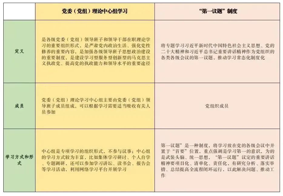“第一议题”制度,就是聚焦政治建设这个党的根本属性,各级党组织必须把学习习近平新时代中国特色社会主义思想和党的会议精神、习近平总书记重要讲话精神等内容,作为党委会、理论中心组学习、支部大会、支委会、党小组会及其他党内重要会议的“第一议题”,第一时间组织传达学习。
