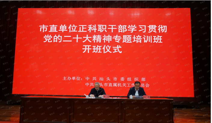 为深入学习贯彻党的二十大精神,落实我市深化实施党的二十大精神“大学习大培训大提升”计划,教育引导市直单位党员干部更加深刻领悟“两个确立”的决定性意义,增强“四个意识”、坚定“四个自信”、做到“两个维护”,3月13日上午,由市委组织部、市直机关工委联合举办的市直单位正科职干部学习贯彻党的二十大精神专题培训班正式开班。市委副书记、秘书长、市直机关工委书记赖小卫作开班动员并授课,市委常委、组织部长田晖主持开班仪式。市直各单位、中直和省直驻汕单位1682名正科职干部参加专题培训。