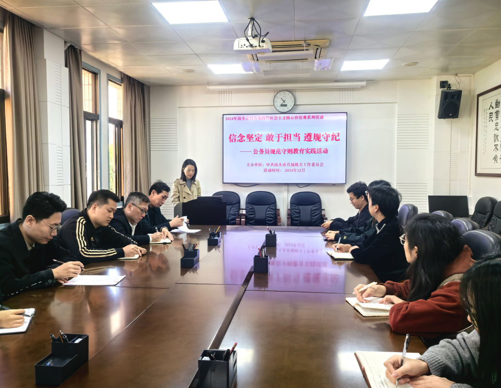1213日,市直机关工委开展2024年汕头市培育和践行社会主义核心价值观系列活动之信念坚定 敢于担当 遵规守纪公务员规范守则教育实践活动。
