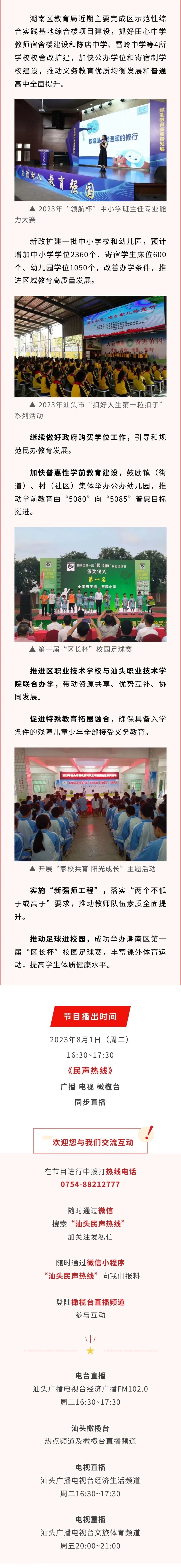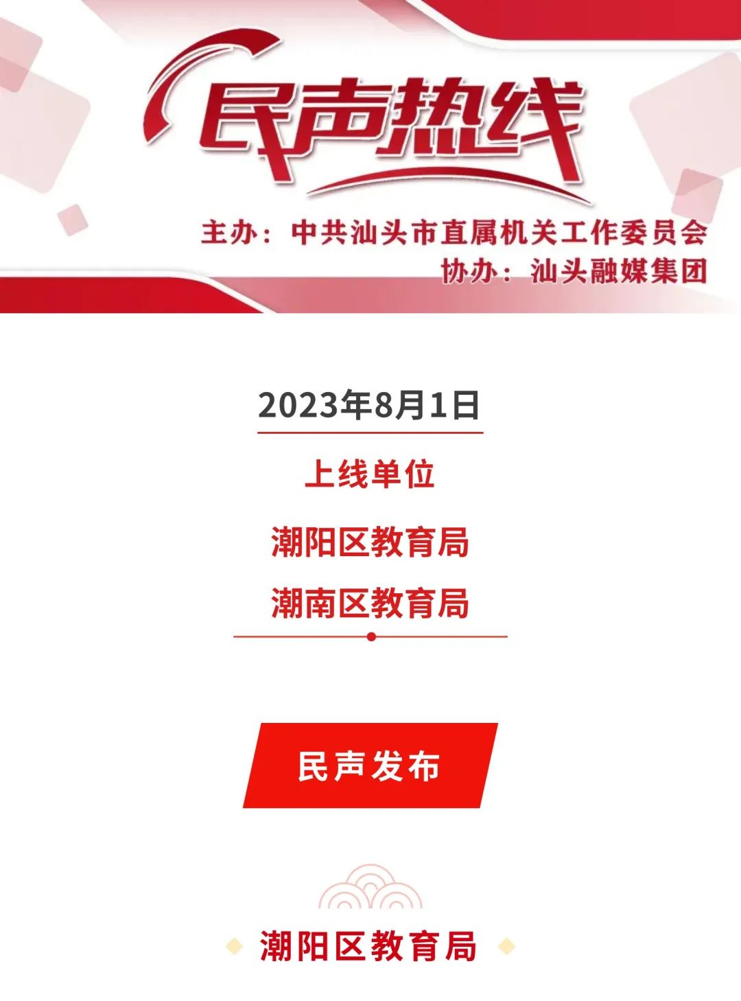 【我为群众办实事】关注“民声发布”邀您交流互动!《民声热线》8月1日上线单位:潮阳区教育局、潮南区教育局