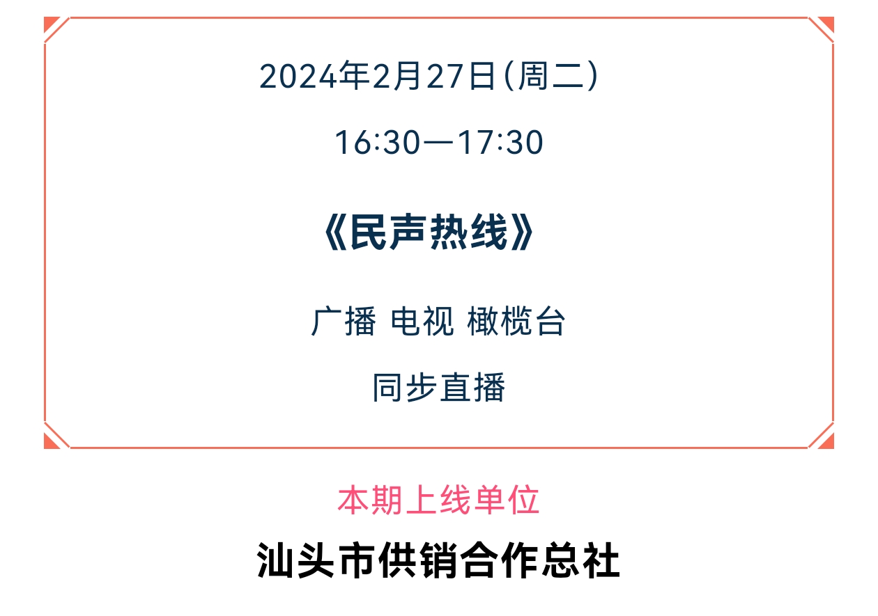 【我为群众办实事】关注“民声发布”邀您交流互动!《民声热线》2月27日上线单位:汕头市供销合作总社