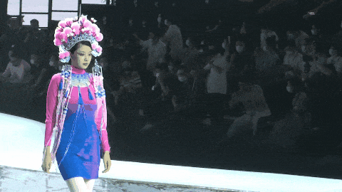 出现在外国时装秀的舞台上