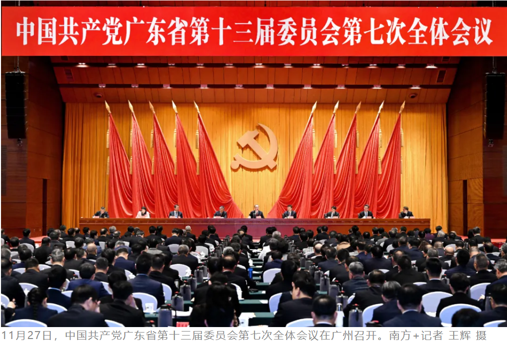 11月27日,中国共产党广东省第十三届委员会第七次全体会议在广州召开。会议以习近平新时代中国特色社会主义思想为指导,全面贯彻落实党的二十大和二十届历次全会精神,深入学习贯彻习近平总书记视察广东和出席第十五届全国运动会开幕式重要讲话重要指示精神,研究谋划“十五五”时期我省经济社会发展,坚定不移挑好大梁、全面推进强省建设,奋力在新起点上增创新优势、实现新突破,不断开创广东现代化建设新局面。省委常委会主持会议。省委书记黄坤明代表省委常委会作报告,并就有关文件稿向全会作说明。